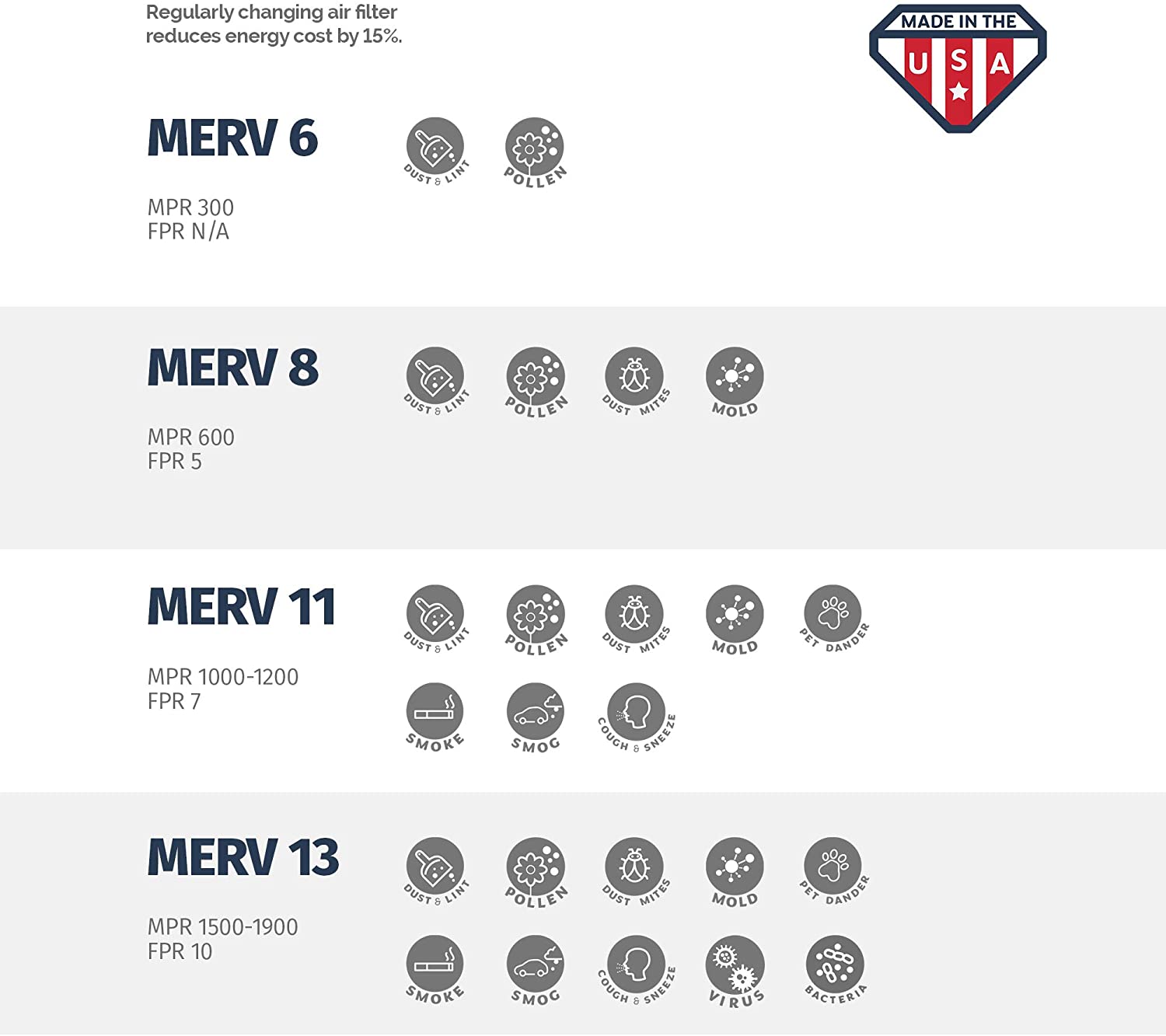 - Comparable to Honeywell Allergen Elite FPR 10